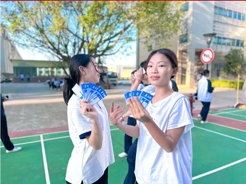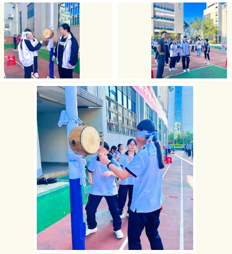 游园活动现场热闹非凡。穿衣接力、趣味保龄球、抢凳子、夹球接力、蒙眼击鼓、套圈游戏、蒙眼喂食等多项节日趣味游戏精彩亮相,丰厚的游戏奖品吸引了众多学生积极参与。现场欢声笑语不断,浓厚的节日气息扑面而来,为这场游园活动增添了无限生机与趣味。